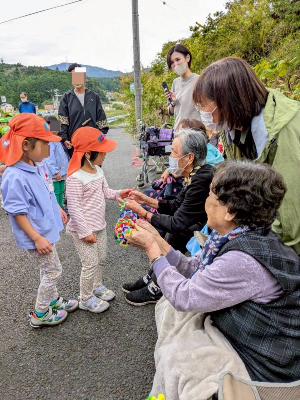 呼んだり、握手する微笑ましい姿が見られました。交流会後は、くわのみの